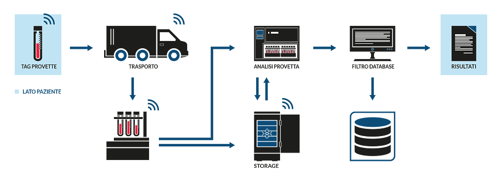 In generale, questi materiali devono essere conservati a temperature di diversi gradi anche sotto lo zero. Quando vengono rimossi dai frigo / congelatori, i campioni possono degradarsi non appena la temperatura inizia a salire. Quindi, oltre alla tracciabilità, lo sforzo è anche di mantenere l’integrità del campione biologico. L’ obbiettivo del progetto è tracciare tutti i campioni Biologici tramite il nostro BioRFID. La ricerca si concentra sulla verifica di componenti hardware, tra cui numerosi tag UHF e lettori portatili per rendere l’impiego il più ergonomico e funzionale possibile. I tag possono essere letti con una precisione del 100%, e vi è la possibilità di essere scansionati senza che i frigo / congelatori debbano essere aperti.